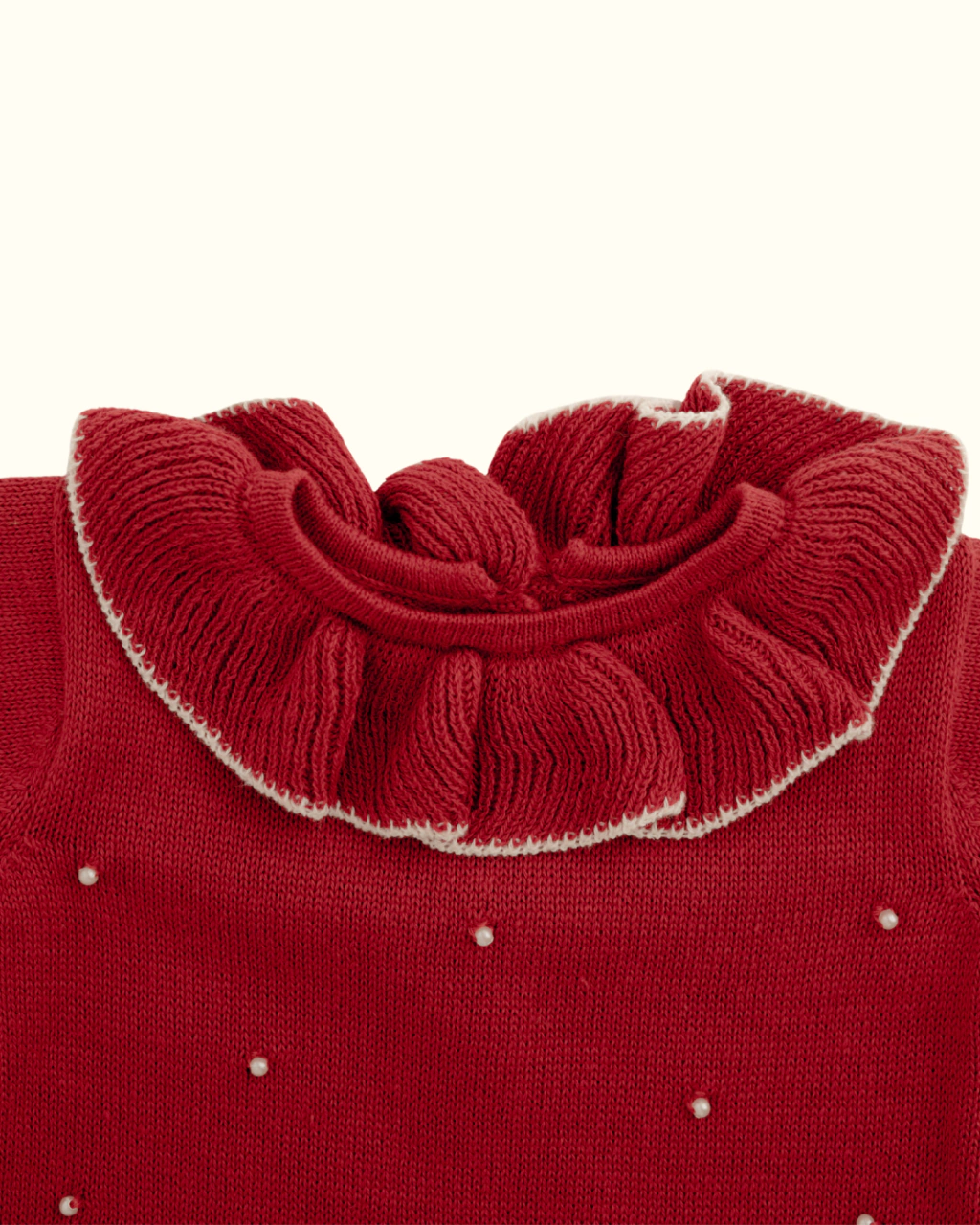 O Macacão Elisa Vermelho é pura poesia em forma de peça. Com seu tom vibrante e delicadas pérolas aplicadas à mão, ele combina o charme atemporal com um toque refinado de modernidade. Os babados suaves ao redor da gola completam o visual com feminilidade e elegância na medida certa.